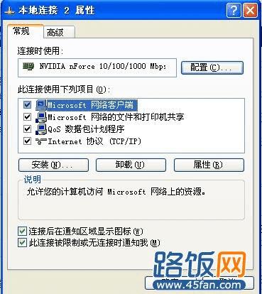 1、右键“网上邻居”----属性----“本地连接”属性-----“配置”,如下图所示: