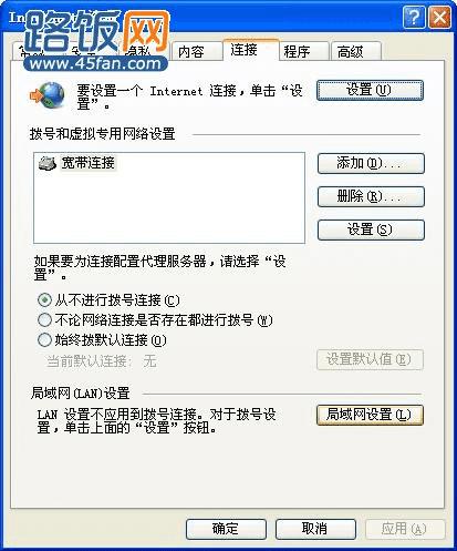 2、点击“连接”选项---“局域网(LAN)设置”,如下图所示: