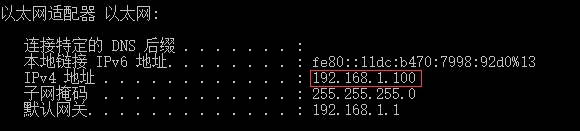 在cmd中输入ipconfig,看看IPv4 地址中对应的值