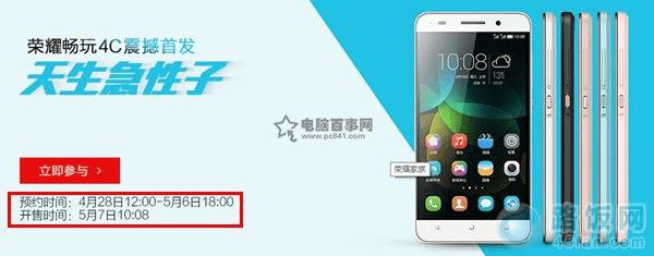 关于上市时间方面,荣耀畅玩4C已于4月28日12:00(也就是今天中午12点)-5月6日18:00期间在华为商城,京东商城以及华为天猫旗舰店进行预约预售,将于5月7日上午10:08正式发售,因此,确切的说,荣耀畅玩4C将于5月7日正式上市。