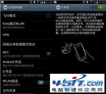答:在设定-更多…里开启NFC、Android传送和S传送,然后打开你想要传送的音乐、图片或程序,同时将你的S3背面靠近其他支持SBeam功能的设备后面,再点击你的屏幕即可开始自动传送。