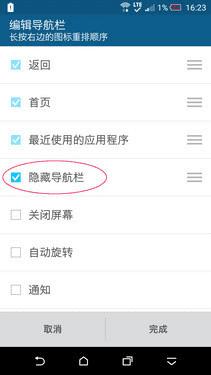 首页导航栏按钮定制界面(左为HTC One M9,右为LG G4)