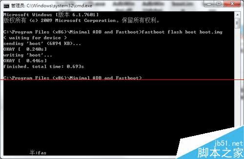2、然后刷入带ROOT好的内核:fastboot flash boot boot.img