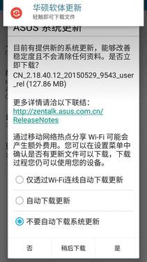 华硕ZenFone 2在系统更新方面还是比较上心的,连接上WiFi网络通过OTA的方式即可轻松的进行升级,笔者手中的这台ZenFone 2已经升级到目前最新的218版本,看版本描述是修复了此前版本的一些Bug,所以大家在日常使用时最好确保系统为最新版本。