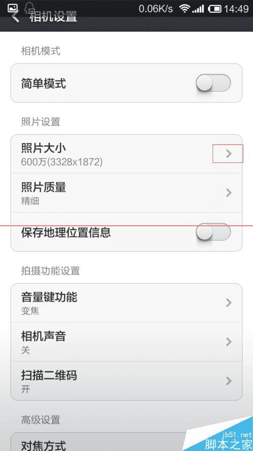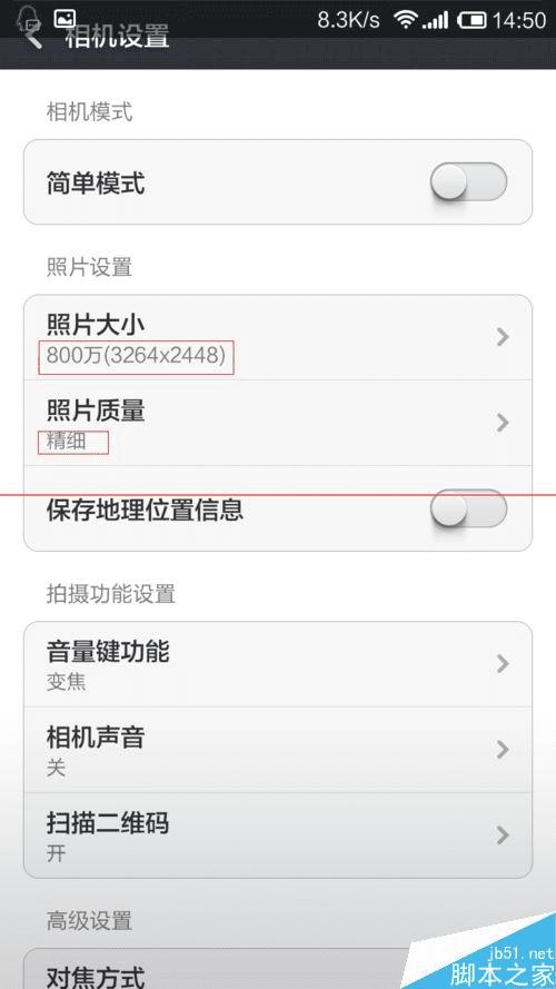 1、打开手机相机设置——高级功能——简单模式——立即切换专家模式——设置——照片大小——800万(3264*2448)