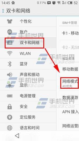 进入魅蓝Note2【设置】界面,点击【双卡和网络】选择【网络模式】,点击【小箭头】根据所需选择网络模式即可。(如下图)