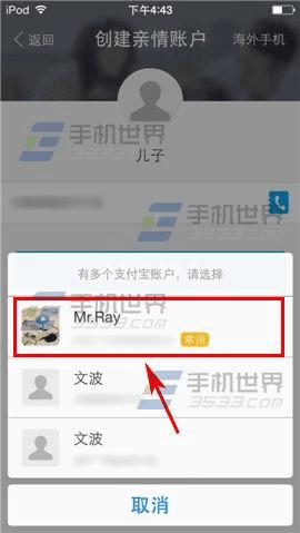 3)输入对方的账号点击【加入亲情账户】,如果对方有多个账户的话,可以选择一个【常用的账号】进行添加。(如下图)