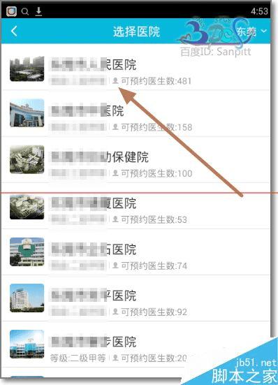 2、罗列出来的医院是你所在地区的,若需要选择其他地区则可以改变右上角的地区。