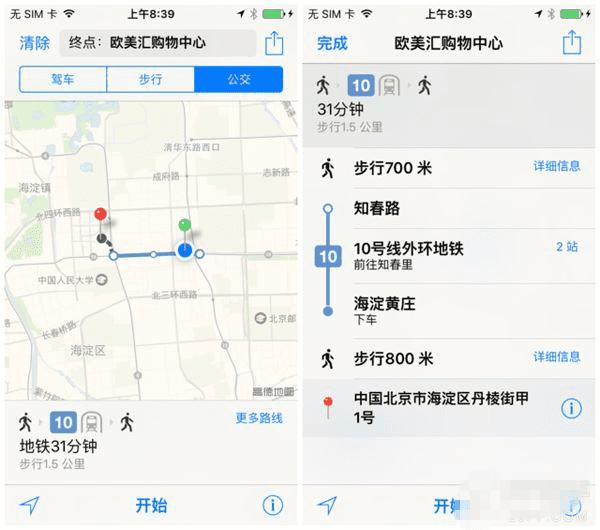 过去几年,iOS内置官方地图的体验不断的到优化,iOS9中还引入了名为“Transit”的通勤路线功能,可以为用户提供从步行到乘车整个完整的通勤路线,这一功能涵盖了北京、纽约、伦敦等城市,最新的地图应用中,已经支持包括北京、上海、深圳、广州、成都、西安、杭州、郑州等300多个城市的公交导航服务。