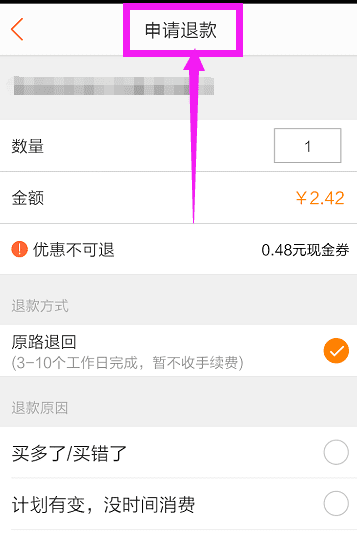 8、由于小编之前购买食品的时候,使用了一个现金券,那么,它就会弹出来一个小窗口,提示我们那个使用过的现金券是不可以退的。确定要退款的话,就在上面点“确定”。