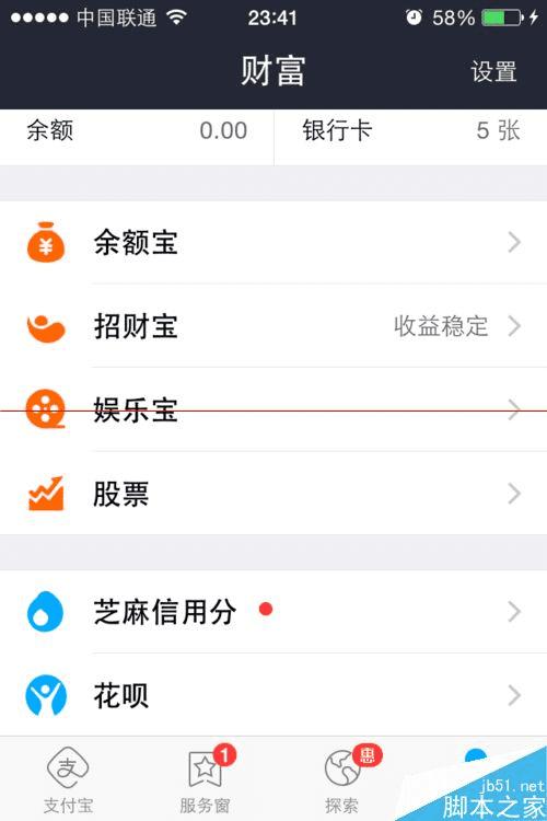 2、首先,用户打开手机支付宝APP,进入到操作界面。在操作界面中的右下角我们找到并点击【财富】选项。