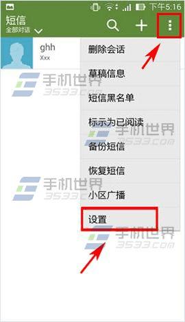 1)进入华硕飞马2Plus手机的信息界面,点击【竖三点】选择设置,在设置界面开启【提醒窗口】即可。(如下图)
