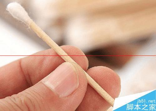 3、有的机器用的时间比较长了充电口比较脏,可能捏扁棉棒头擦得效果不好,那么我们就用美工刀将棉棒的竹签削薄,再缠上棉花蘸上酒精擦就可以了。