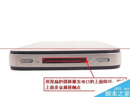 2、将棉棒头捏扁,蘸上酒精,擦拭苹果数据线插口,注意是只要擦接口上面部分就可以了。来回擦几遍就可以了,