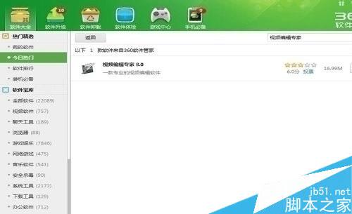 1:利用搜索引擎在互联网上搜索“视频编辑专家”软件!这个软件是免费使用的,把软件下载到电脑中,安装好!(这里要注意不要下载身份不明的软件,以免被恶意病毒、木马损害电脑。小编是利用软件管家来找的,找到的是“视频编辑专家8.0”)