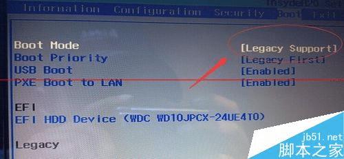2、再选择【boot】或者【Startup】选项卡,将光标移到【UEFI/Legacy Boot】,按回车键,选择【Legacy Oniy】。