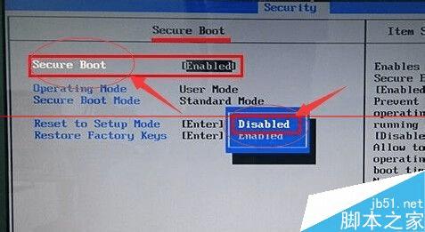 1、开机时同时按住FN+F2键进入BIOS系统进入界面后,选择【Security】选项卡,将光标移到【Secure Boot】,按回车键,将参数改为【Disabled】。