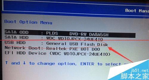 3、按FN+F10键退出保存,保存后,电脑会重启,在重启时按FN+F12键调出目录菜单,将光标移到USB HDD,按回车键,引导U盘启动。U盘必须是系统盘