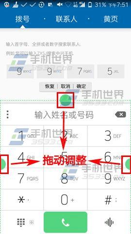 打开中兴星星一号的拨号界面,长按左下角的【隐藏键盘】按钮,这个时候键盘就进入到调整模式,我们可以通过拖动绿点来调整大小,调整满意后点击上方绿点的【确定】即可。(如下图)