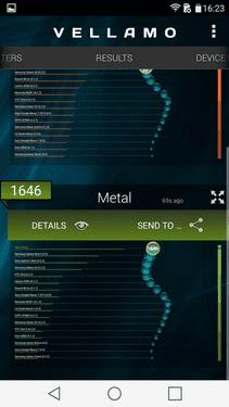 在“Vellamo”测试中,Qualcomm骁龙808测试设备“HTML5项”得分为1984分,而“Metal项”得分为1646分。若是与骁龙810测试设备在该轮测试中的得分进行对比,我们不难发现二者的差距。