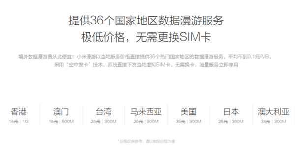 众所周知,当国内用户出国使用数据流量时,如果没有购买数据包或是当地的SIM卡,那么所产生的费用是非常高的。小米特意为国人定制了小米漫游服务,来方便经常出差的用户。当你来到国外,小米会采用“空中发卡”的技术,系统将直接下发当地的虚拟SIM卡,无需换卡,就可以使用当地的数据流量。