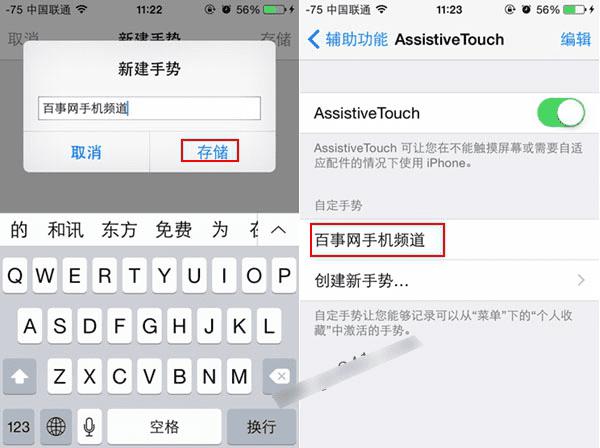 5,当结束手势设置之后,我们需要点击顶部的【存储】按钮即可,随后进行手势命名,值得一提的是,果粉们可以在iphone6手机上设置多个手势操作,如下图所示: