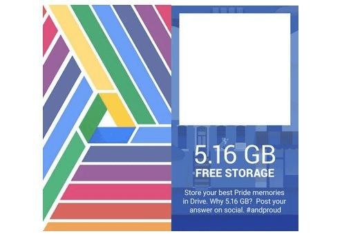 在同志骄傲游行期间,Google为Drive云服务用户提供了5.16GB的空间。