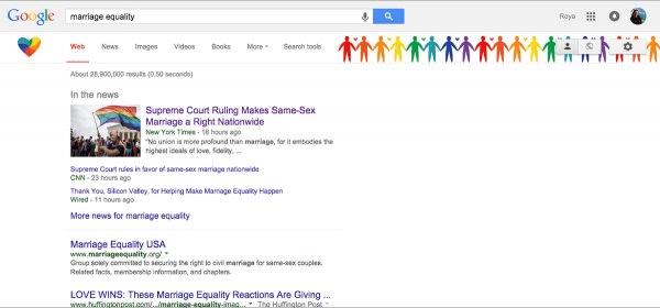 Google搜索当在谷歌搜索中输入“gaypride(同志骄傲)”、“marriageequality(婚姻平等)”或者其他关于同性恋的关键字,Google的搜索引擎就会变成这个样子。