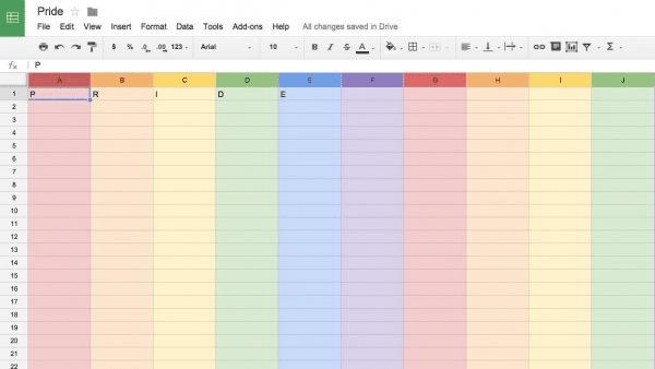 Google表格当用户把“PRIDE”分别在Google表格每一列的开头时,表格将变成彩虹样式,这个彩蛋同样适用于葡萄牙语、西班牙语和日语。
