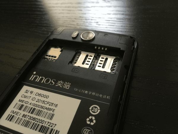 背面的贴纸主要是开盖和插卡的指引,D6000虽然两个卡槽都支持4G,但是只有卡1是支持电信4G的,而且在电信4G的模式下,卡2的移动卡就只能工作在2G模式下。而卡2工作在移动联通4G模式下时,卡1的移动联通也只能回退到2G状态,这不能不说是个遗憾(目前大多数双卡双待4G手机也都有此限制)。