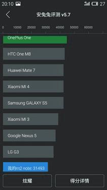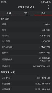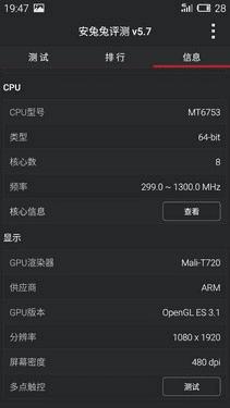 从几个直观的硬件信息可以看出,魅蓝note2搭载的MT6753八核处理器主频为1.3GHz,相比魅蓝note的1.7GHz有些变化。另外图形处理器也有Mali-T760变为Mali-T720,所以反映在跑分结果上也是很正常的。相比性能数据上的差距,我们更应该看到MT6753在网络上更好的支持,这也是此次魅蓝note2更新的重点部分。