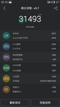 64位CPU配合64位系统,形成双64位架构,对于用户的实际体验怎么样?可能从目前大多数还针对32位开发的程序来说,用户切实能够感受到的变化少之又少,我们可以期待下未来64位应用所带来的改变。经过简单的测试不难发现,魅蓝note2从数据上显示出来的性能相比魅蓝note有所降低,