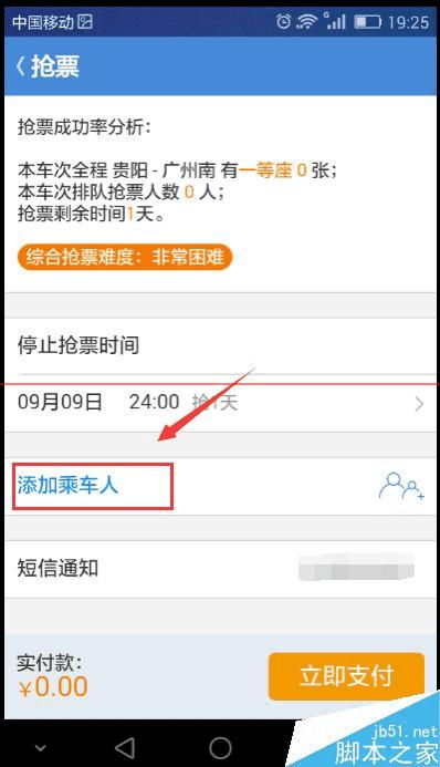 7、如果你选择【先付钱自动抢】,然后点击【添加乘车人】