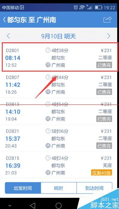 2、在这里可以查看到每趟列车还有多少张票,当然你可能想订购一等座、二等座或者卧铺等,但是目前没有,怎么办?首先打开你需要乘坐的那趟列车。