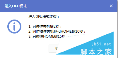 一、打开iTunes,断开iOS设备与电脑的连接。长按【Home键】+【电源键】8秒强制关机 -- 关机后长按【Home键】键8秒--通过USB数据线连接电脑,或者请把设备链接电脑,先按拙电源键】2~3秒,然后继续同时按拙电源键】和【Home键】,持续到第10秒的时候,请立即松开【电源键】,并继续保持按拙Home键】,直到在电脑上看到识别到DFU状态下的USB设备时就进入到DFU模式了,这个时候iTunes会自动或者手动启动。