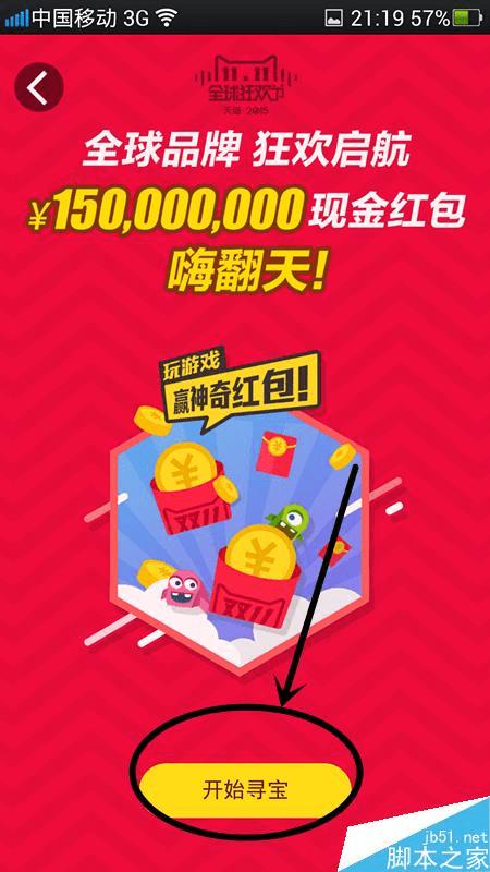 登录淘宝客户端之后,在首页直接点击双十一寻宝的链接,进入双11的页面。