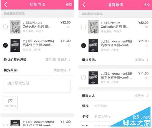 第三步提交您需要退换货原因及退换方式,并且提交