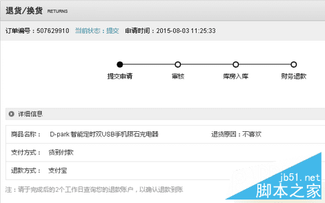 第三步:提交退换货申请成功后,我们会有专门客服人员24小时内与您联系确认。