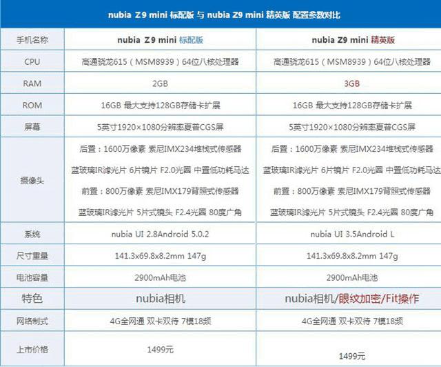 这款机型保持nubia Z9 mini 1499元的售价(后者已降到1299元),加上双卡双待、全网通等技术,综合来讲有着不错的性价比。