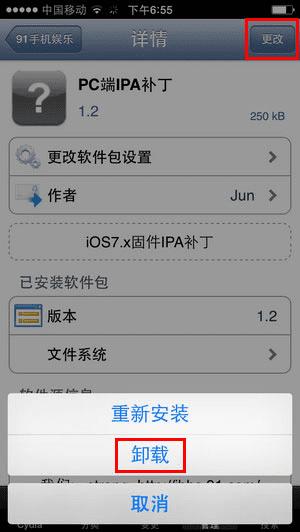 4、还没完,卸载后还得重新安装此补丁,Appsync for iOS7是越狱之后要安装的一个基础插件,它可以有限避免一些软件安装的兼容性和提升稳定性。具体安装方法见:《Cydia如何安装软件 Cydia软件源添加图文教程》