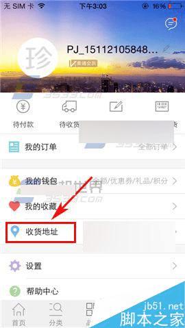 1)打开珍品网进入应用后点击右下角【我的】,在个人页面点击【收货地址】。(如下图)