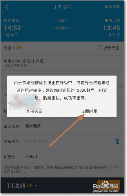 7、抢票还是登录到12306官方网站进行,只不过是由软件来登录去抢票并下单支付车票钱。所以建议绑定12306账号。