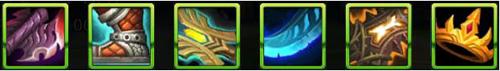 后期纯输出装:破甲战斧、敏捷长靴、雷霆闪电戟、纳希尔圣剑、幽魂之刃、众神之力。
