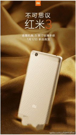 红米3手机发布应该不会举办发布会,而是会在1月12日直接在小米官网现货首发,599还是699呢?