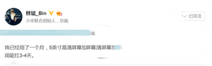 小米联合创始人林斌表示该机重度使用两天不成问题。