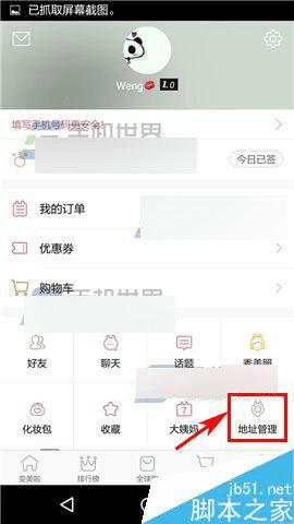 1)打开美啦,然后点击右下角的【我的】,然后点击右下方的【地址管理】;(如下图)