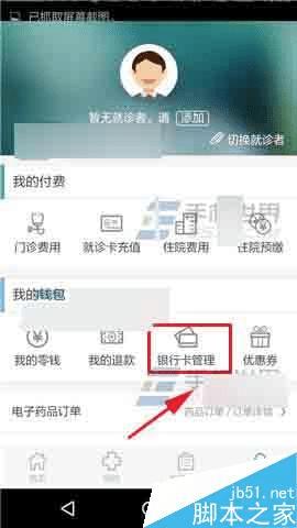 1)打开趣医院,点击右下角【我的】,然后点击【银行卡管理】;(如下图)
