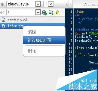 按照第一幅图中又键点击index.php文件,选择通过URL访问得到第二幅图,复制地址栏的网址,这就是你微信开发需要填写的url,而你需要填写的token就是你上一步骤自己修改后的token。