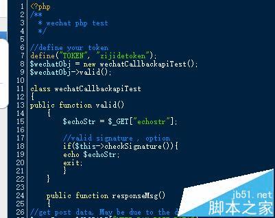 将下面的代码加标点复制进去。将define("TOKEN", "weixin")这句话中的weixin改成你自己的token,例如zijidetoken;然后点击右上角的全部保存。