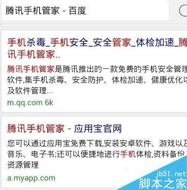 然后搜索某个软件的官网,然后直接打开,例如搜索腾讯手机管家,就会出现该软件的官网,然后直接下载是绝对不会带病毒的